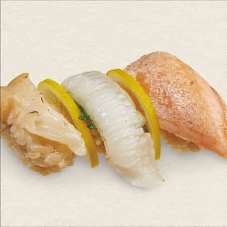 サーモン好きにはたまらない食べ比べ。大人気の生サーモンを存分にお楽しみいただける一皿です。